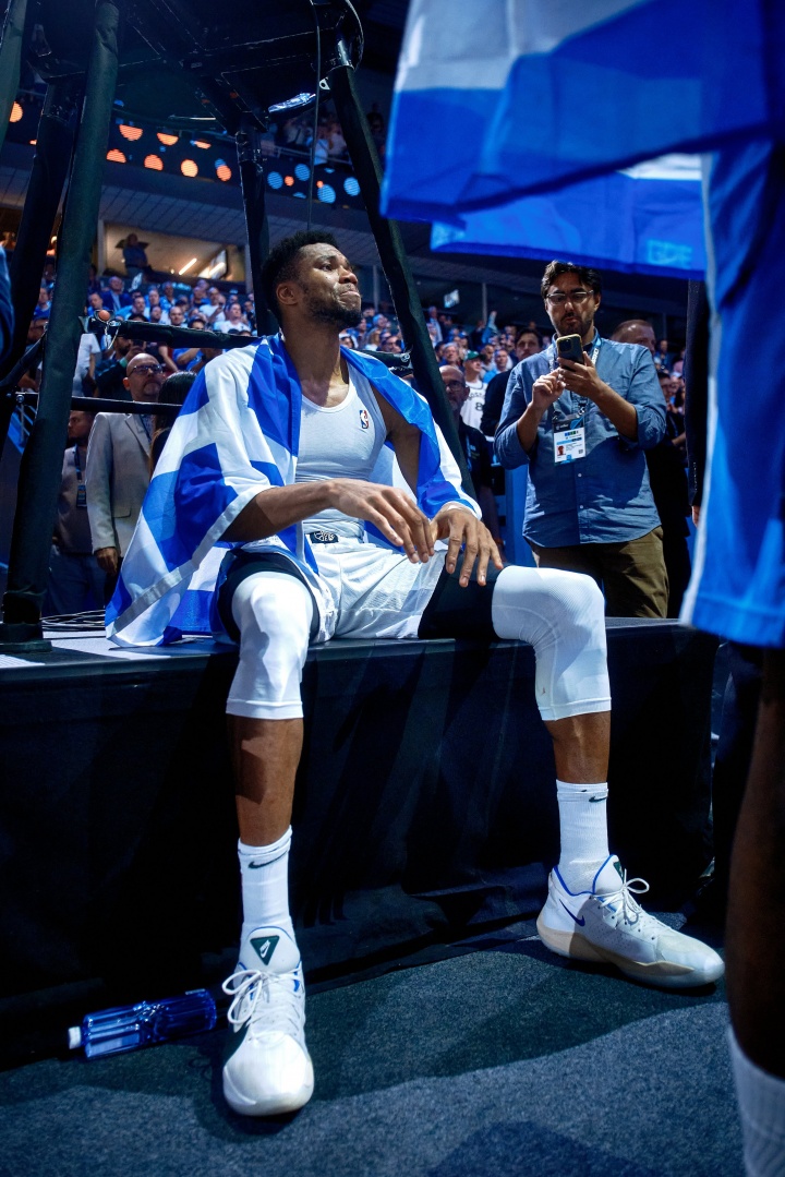 Không đăng lại mà không được phép:GsuNews » Huyền thoại Hy Lạp! Sau khi giành được vị trí thứ ba, Antetokounmpo ngồi một mình trên khán đài đeo cờ quốc gia, và rất phấn khích và giữ nước mắt