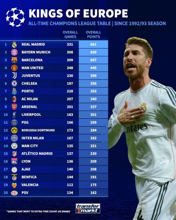 Mùa mới của Champions League bắt đầu vào sáng mai và Đức liệt kê tổng số điểm của Champions League (...